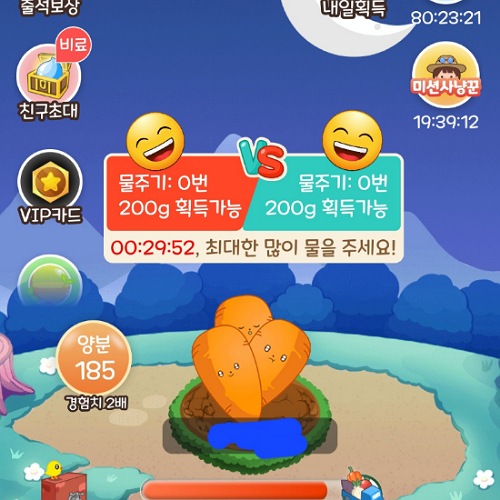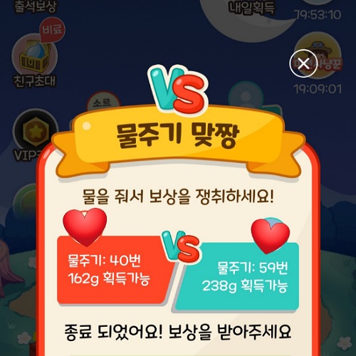물을 주면 대결 후 받는 물의 양이 실시간으로 표시됩니다.