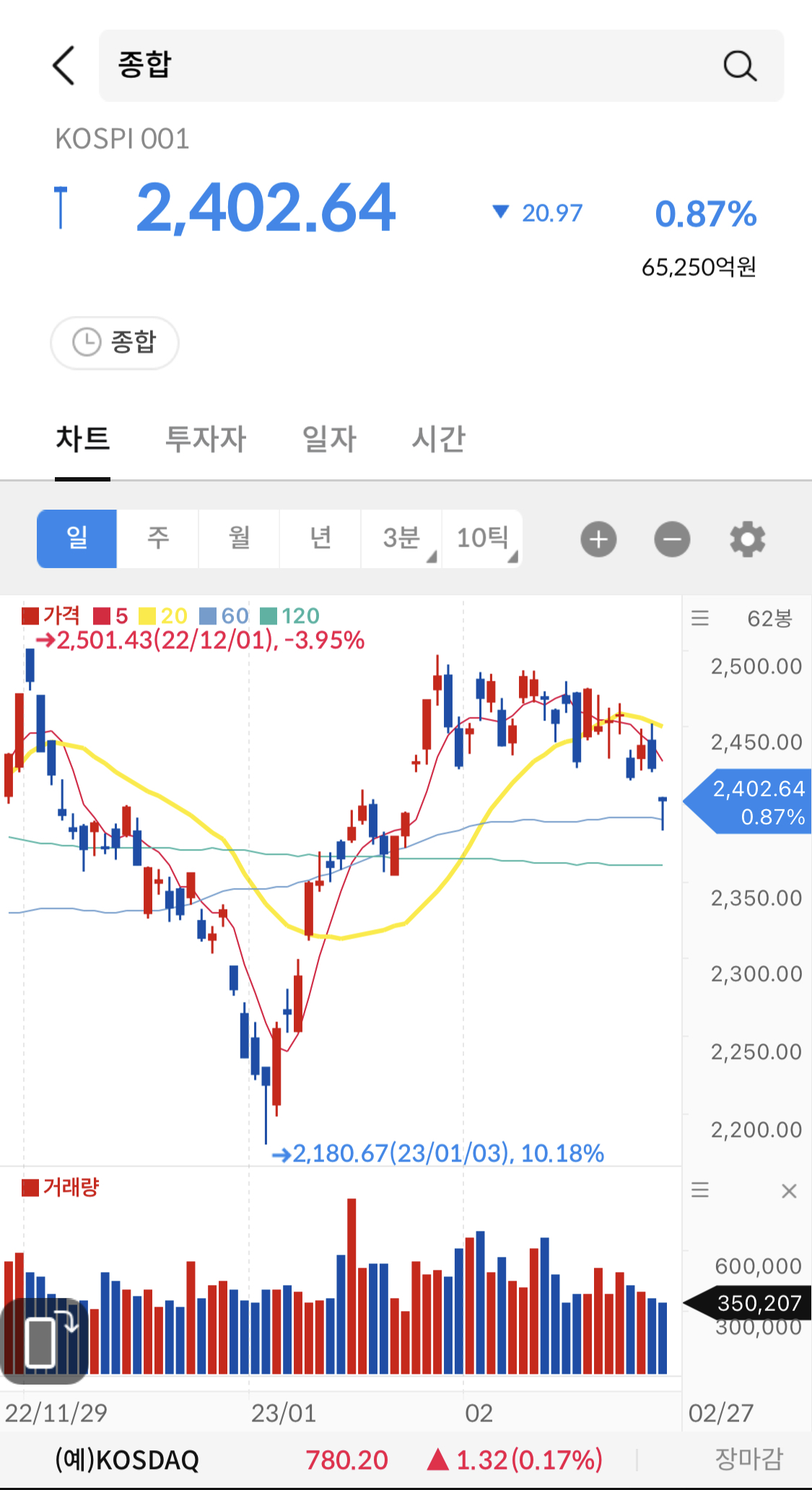 개인투자자들은 순매수 상승으로 방어했지만 해외 및 기관투자자들은 2,400선을 간신히 지키며 이틀 연속 매도세를 보였다.