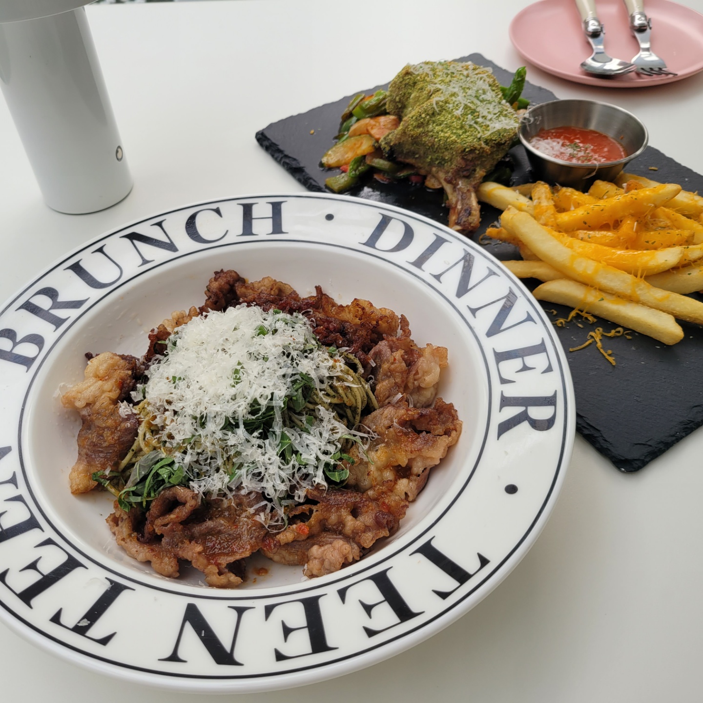 외부에 메뉴판도 있으니 어떤 메뉴인지 보고 들어가시면 됩니다. 일반적으로 파스타/피자 등이 있어서 캐주얼한 소개팅이나 데이트에 아주 잘 어울리는 것 같아요! ㅎㅎ 크리스마스 이브에 산타가 이렇게 반겨주셨네요! 너무 귀여워서 사진찍고 싶네요 ㅎㅎ 입구는 이렇게 긴 복도! ㅎㅎ 여기는 딩딩 강남점인데 들어서자마자 반짝반짝한 매력이 있어요. 커다란 크리스마스 트리도 있어서 온통 포토존이다. 제 생각에는! ㅎㅎ 날씨도 좋은데 이 테라스 자리에서 차한잔 하면 좋을 것 같아요 직원분께서 자리 안내를 해주시더라구요! 미리 예약하고 2층으로 올라갔어요. 나는 안내된다! 하지만 올라가기 전에 1층부터 잘 살펴보자! ㅎㅎ 1층은 아직 청소중인 부품들이 있어서 좀 지저분하네요! 하지만 입구는 강렬한 붉은색 벽에 아기자기한 인테리어로 포토존으로 제격! ㅎㅎ 2층으로 올라가는 계단 직전에 각종 와인이 진열되어 있으니 꼭 팔아야지. ㅎㅎ 2층으로 올라가는 계단에 이런 거울이 있어서 거울 앞에서 셀카도 찍어봤어요! ㅋㅋ 오늘 의상도 핑크인데 잘 어울리죠? ㅎㅎ 2층에 올라가면 제일 먼저 보이는게 벽면 전체에 실크스크린! 크리스마스 분위기 영상과 음악이 나와서 너무 신났어요~ ㅎㅎ 1층보다 2층이 훨씬 넓어요! 방처럼 꾸몄어요! 진짜 생일파티인지는 모르겠는데 자기네들이 정해준게 아니라 앉으면 파티같은 느낌이라 부럽다 다음에는 더 많은 인원을 모집해서 앉을 수 있도록 해야겠다 제자리에 ㅋㅋㅋㅋㅋ 화장실은 2층에 있고, 화장실 마저도 굉장히 특별하게 느껴진다. 네 ㅋㅋㅋㅋ 자리에 착석하신 후 메뉴판과 기본 식기 세팅을 해주세요! 식기구에 신경을 많이 쓴듯 사진도 찍고 ㅎㅎ 메인 메뉴는 피자와 파스타! 오른쪽 돔 파스타가 시그니처 메뉴라 이번에는 다른 것도 먹어봤어요 ㅎㅎ 메인메뉴 뿐만 아니라 카페 메뉴도 다양해서 밥 먹으러 꼭 와야지, 그럴 필요 없이! 와인도 잘 준비되어 있어서 밤에 가볍게 와인 한잔 하기 좋은 것 같아요. 봉골레 파스타 가장 먼저 나온 봉골레 파스타! 기름기가 많아서 깔끔한데 약간 매콤해서 느끼하지 않아서 맛있습니다! ㅋㅋㅋㅋ 필라프 갈릭버터 쉬림프 필라프 ㅋㅋㅋㅋㅋ 좀 퍽퍽해보이지만 새우가 듬뿍 들어있어서 먹을만해요! 튀김, 돈까스 등 다양한 밑반찬이 무한리필! lol TeenTeen(@tteenteen_official) • Instagram 사진 및 동영상 2,164 팔로워, 98 팔로워, 269 게시물 – TeenTeen(@tteenteen_official) Instagram 사진 및 동영상을 확인하세요 www.instagram.com Instagram in Gangnam.색다른 맛집을 경험하고 싶다면 딩딩 강남점으로 오세요