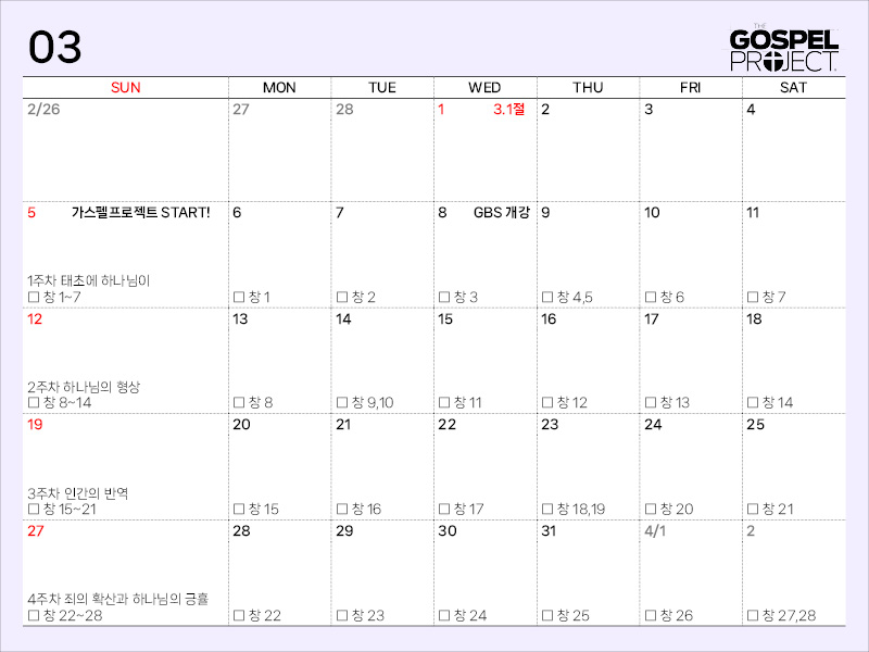 3월 성경읽기표