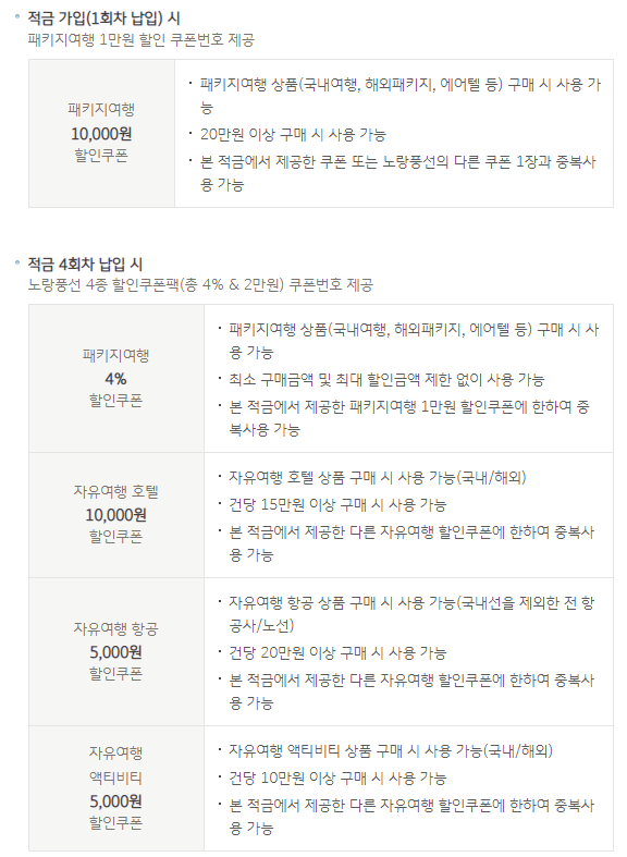 여행사와 제휴를 맺은 것 같습니다. 노랑풍선 여행사. 패키지 투어는 4% 할인쿠폰과 일반상품 소액을 제공합니다. 한푼이라도 아끼고 여행가서 한잔 더 즐기시길 바랍니다.