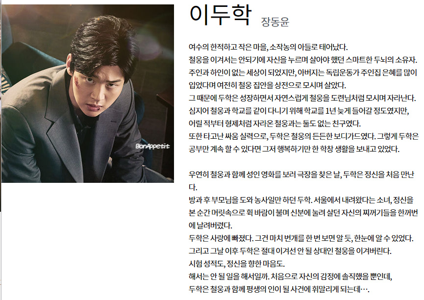 두학은 싸움을 잘해서 학창시절 철웅의 경호원 역할도 잘했다.