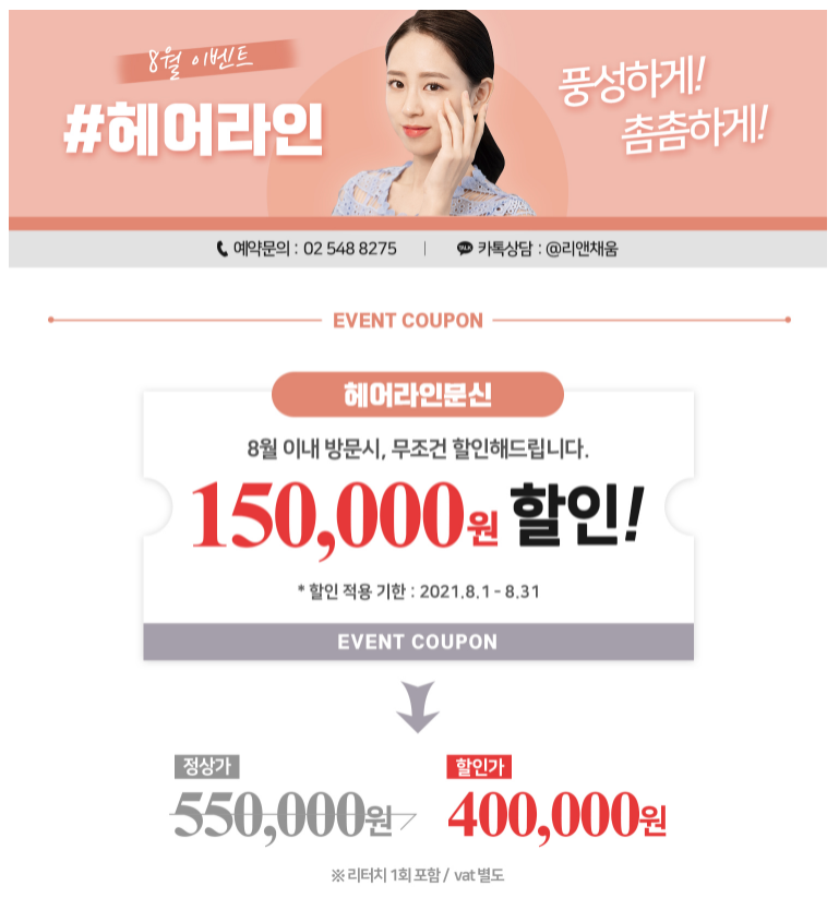 M자형의 넓은 이마를 가진 분들이나 출산 후 갑자기 시작된 탈모로 인해 리안왁싱 관련 문의를 하시는 분들로 예약이 꽉 찰 정도입니다.